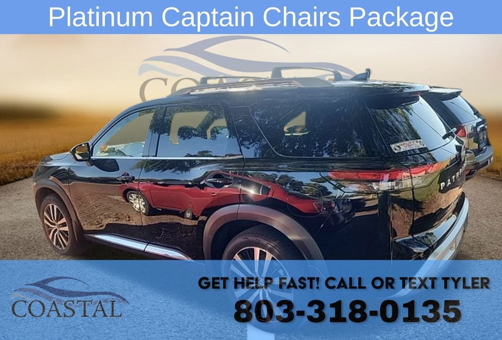 2nd-Row Captain Chairs, 2nd-Row Rear Headrest, 3rd row seats, AM/FM radio: SiriusXM, Apple CarPlay and Android Auto, Auto headlights, BackUp Camera, Bose Premium Audio System, Front dual zone A/C, Heads-Up Display, Heated front seats, Heated rear seats, Heated steering wheel, Memory seat, Navigation system: NissanConnect with Navigation and Services, Platinum Captain Chairs Package, Power driver seat, Power Liftgate, Power passenger seat, Power sunroof, Ventilated front seats, Wheels: 20" x 8J Machined Alloy.